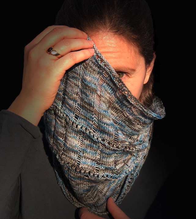 This cowl was designed for the 2018 Carolina FiberFest. It’s meant to be light and airy to help keep the little chills of early spring away. The minimal patterning is perfect for those hand-dyed skeins you fall in love with and want to use for something other than socks.