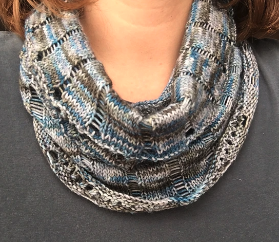 This cowl was designed for the 2018 Carolina FiberFest. This cowl is meant to be light and airy to help keep the little chills of early spring away. The minimal patterning is perfect for those hand-dyed skeins you fall in love with and want to use for something other than socks.